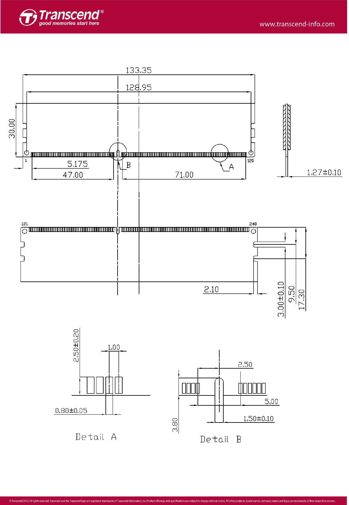 Memory modules Transcend TS128MSQ64V8U-I Datasheet